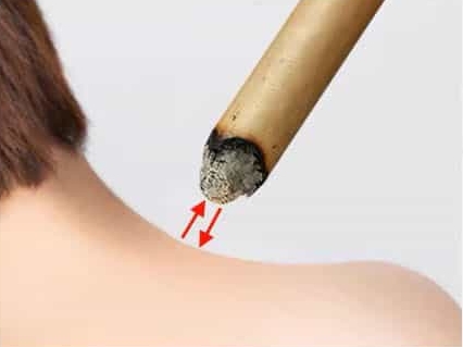 2.Apply Heat:Hold the burning end 1-2 inches (2-5 cm) away from the acupoint or area of focus. Move it in small circular motions.