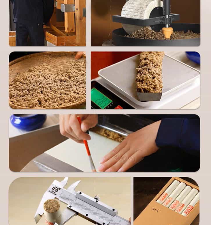5. Cutting: The rolled moxa sticks are cut according to pre-set dimensions to form individual moxa sticks.
